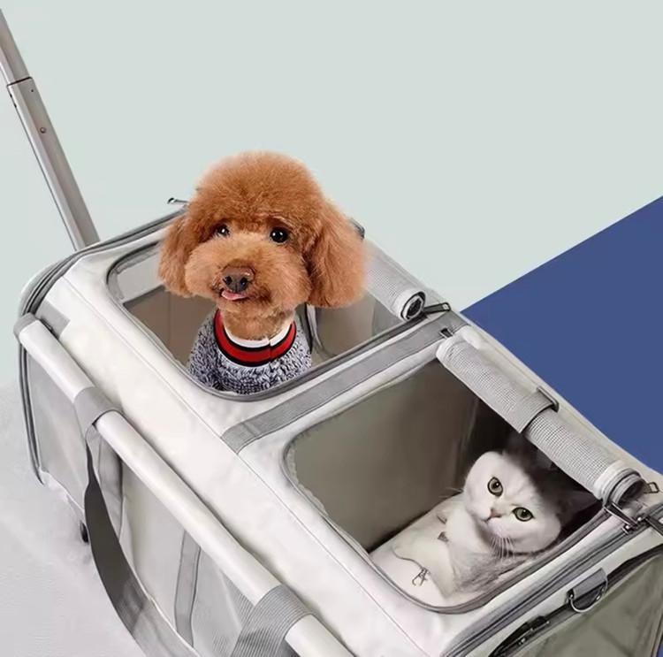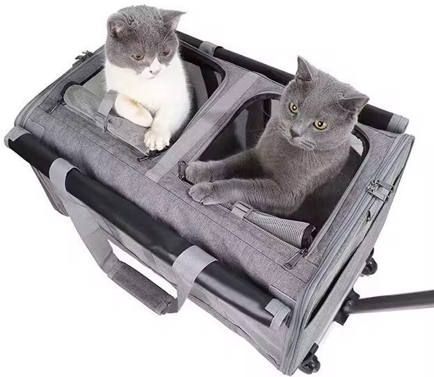 ترولي حمل پت، مخصوص كسايي كه دوتا پت كوچك دارند يا يه پت بزرگ تحمل وزنش ١٢ كيلو ، كه هم به صورت دو قسمت مجزا ميشه و هم ديواره وسطت جدا ميشه ،قابل استفاده به صورت سافت باکس ساده و با ترولی
